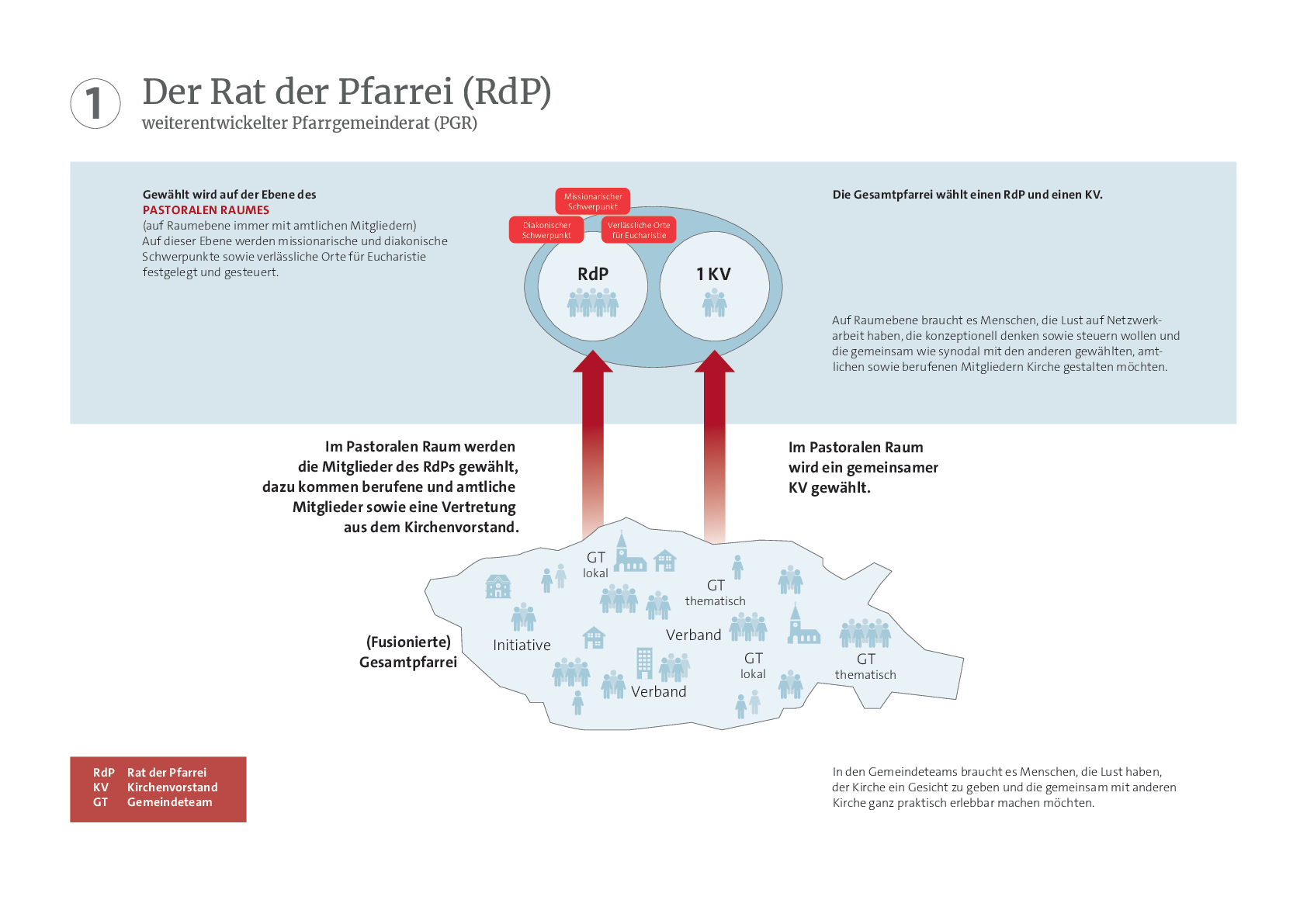 Der Rat der Pfarrei gestaltet gemeinsam mit dem Pastoralteam das kirchliche Leben vor Ort. Er berät und entscheidet über wichtige Fragen der Verkündigung, der Gottesdienste, der Seelsorge sowie des sozialen und caritativen Engagements. Dabei behält er die Menschen im Blick, die im Pastoralen Raum leben. Auch jene, die der Kirche fernstehen.