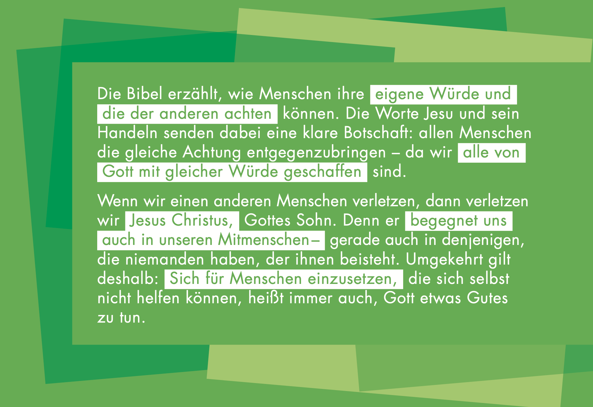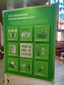 Die Initiative zu dieser Ausstellung geht von der Evangelischen Kirche in Deutschland (EKD) aus. Die St. Barbara Kirche in Bönen und viele andere christlichen Kirchen in Deutschland haben diese Wanderausstellung, die schon seit 2018 anlässlich des 70. Jahrestages der Erklärung der Menschenrechte läuft, gerne aufgenommen. Menschenrechte finden ihren Widerhall in den Glaubensgrundsätzen der meisten Religionen auf dieser Welt.