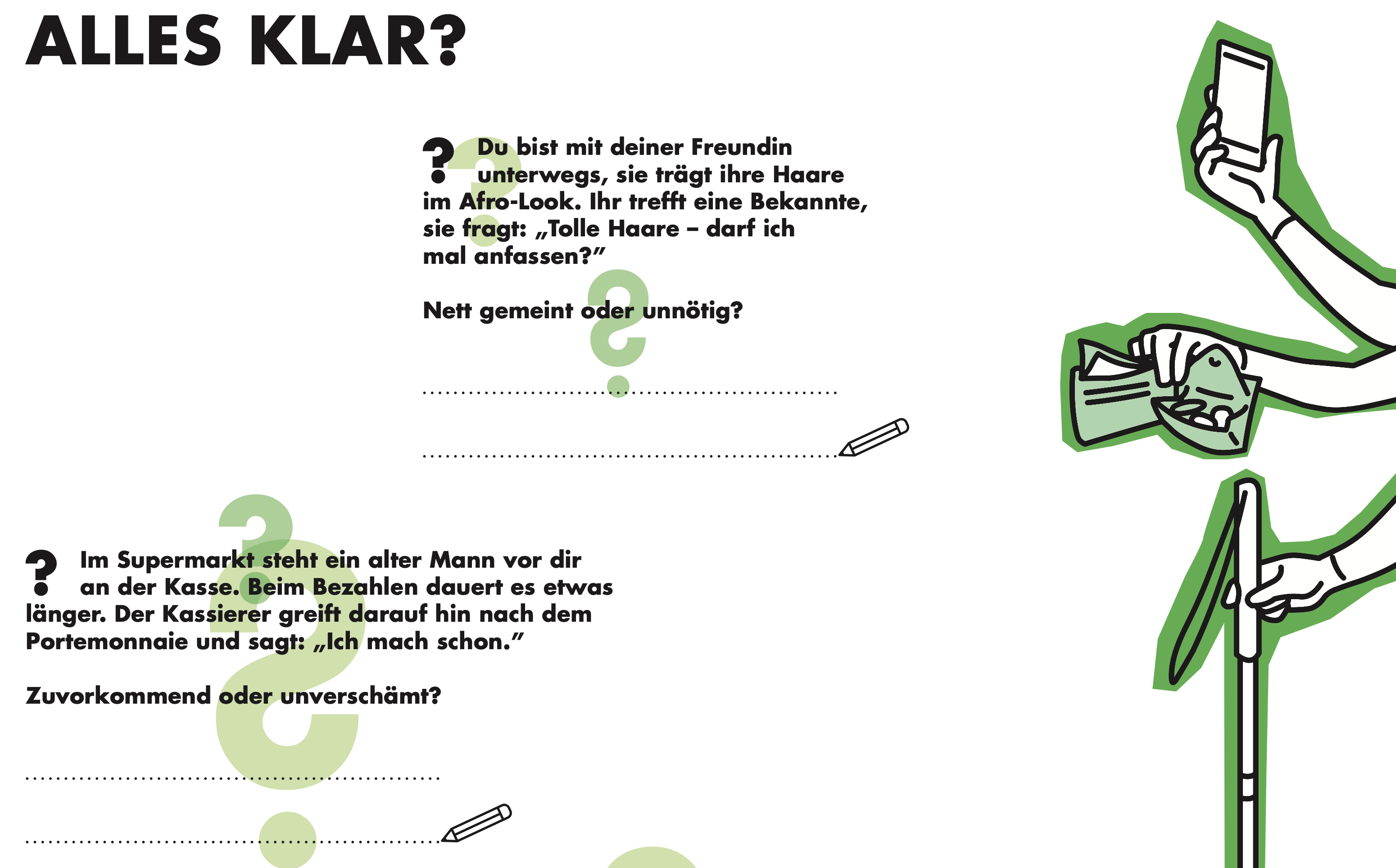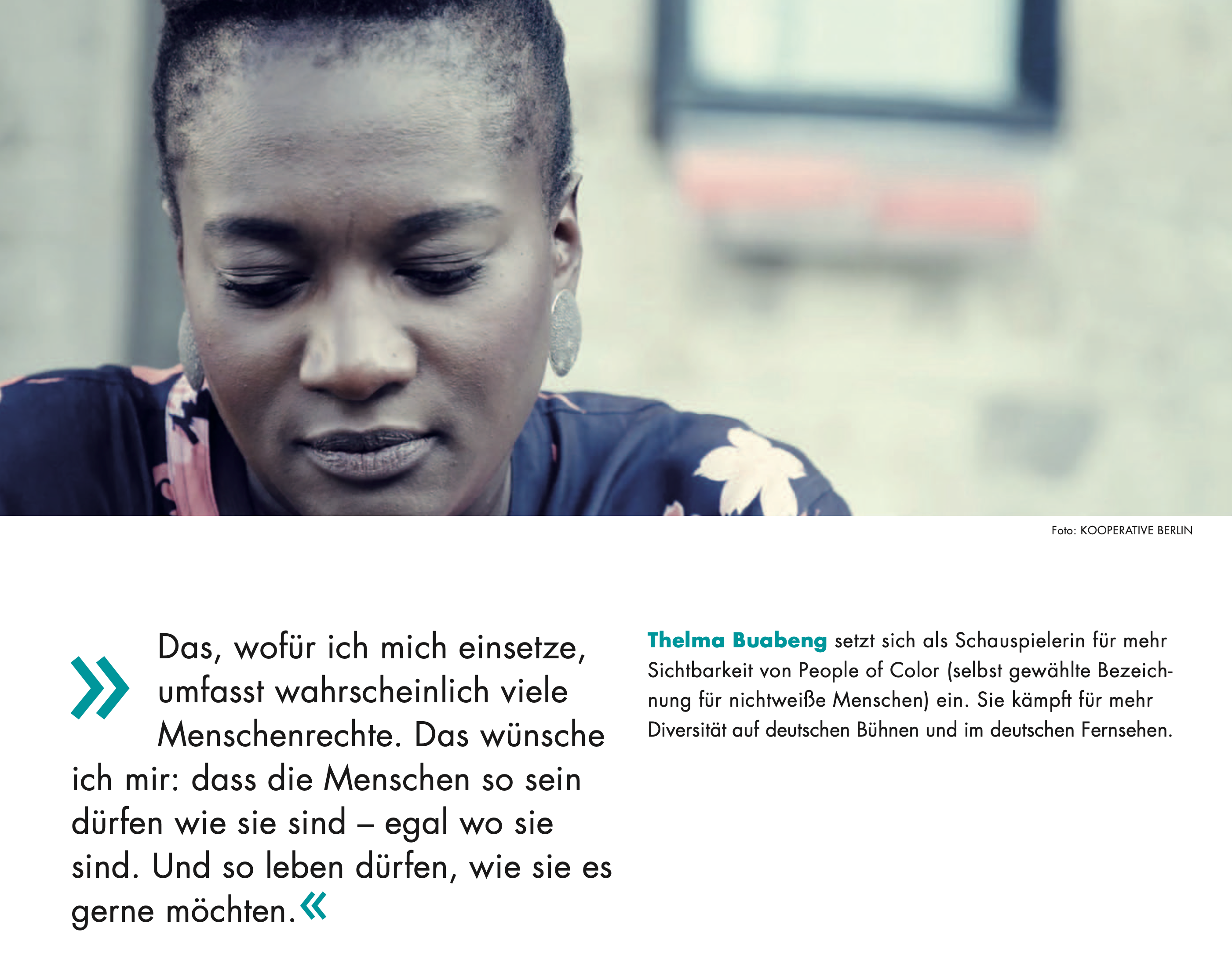 Mit informativen und interaktiven Elementen sowie einem ästhetischen Gesamtkonzept führt die Ausstellung an das Thema Menschenrechten heran und bereitet die komplexe Thematik anschaulich und erlebnisnah auf. Die verschiedenen Objekte bieten den Besucherinnen und Besuchern Raum zum eigenen Nachempfinden sowie zahlreiche Einladungen zur Selbstreflexion.