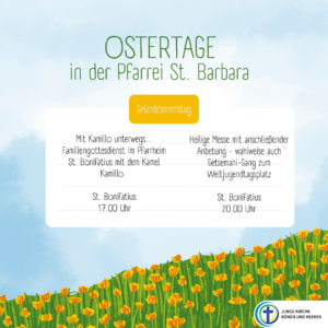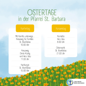 Hier finden Sie alle Gottesdienstzeiten für die Kar- und Ostertage in unserer Pfarrei.