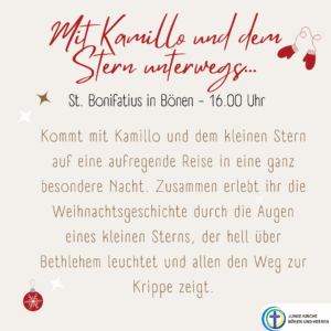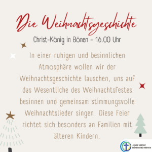 Herzliche Einladung zu unseren Angeboten für Familien an Heiligabend in unseren drei Kirchen.