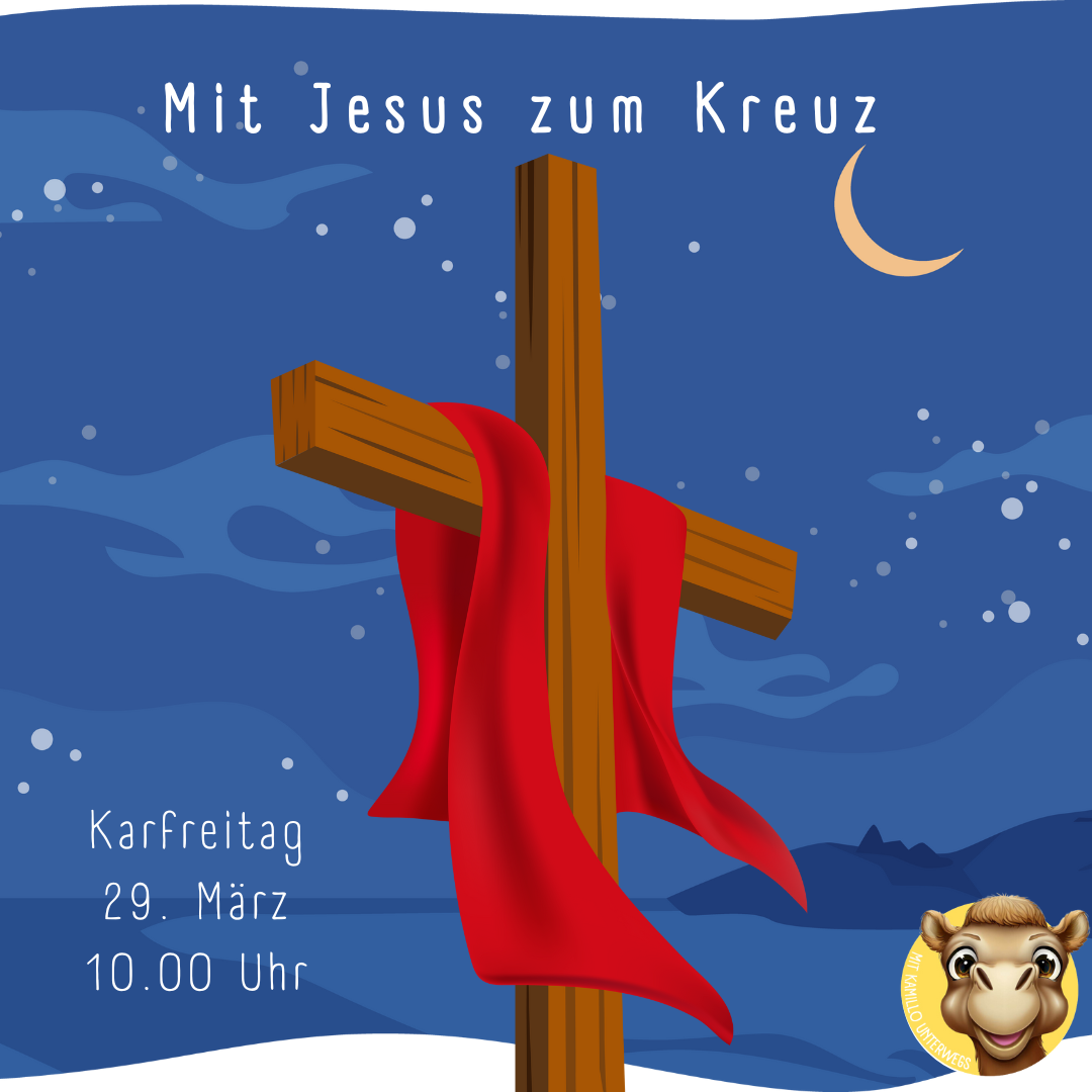 Nach Gründonnerstag möchte ich Karfreitag mit euch zusammen erleben. Gemeinsam mit Jesus gehen wir zum Kreuz. Bei gutem Wetter findet der Gottesdienst auf dem Kirchplatz statt.